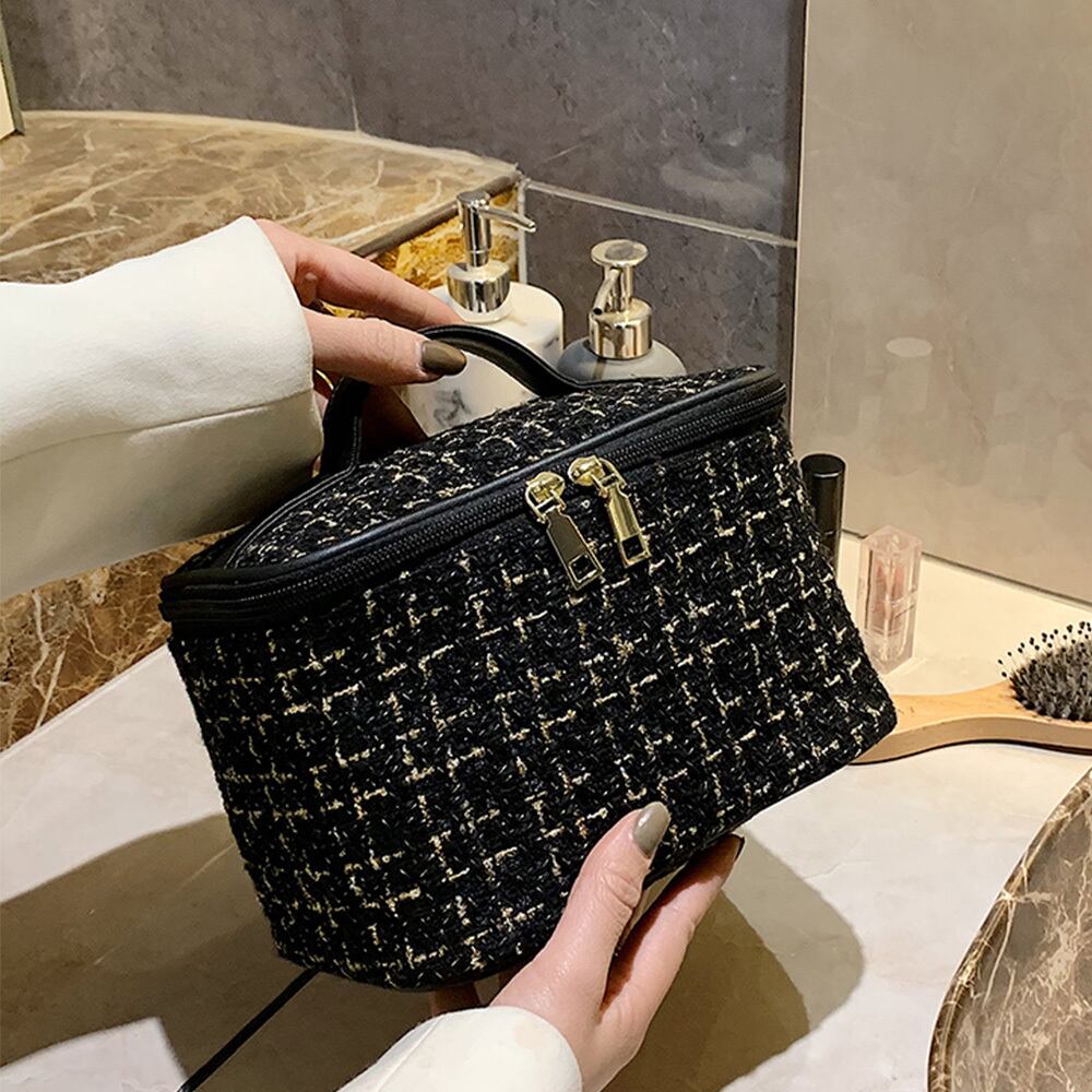 ツイード風小物入れ 化粧箱 持ち手付き 整理整頓グッズ軽量