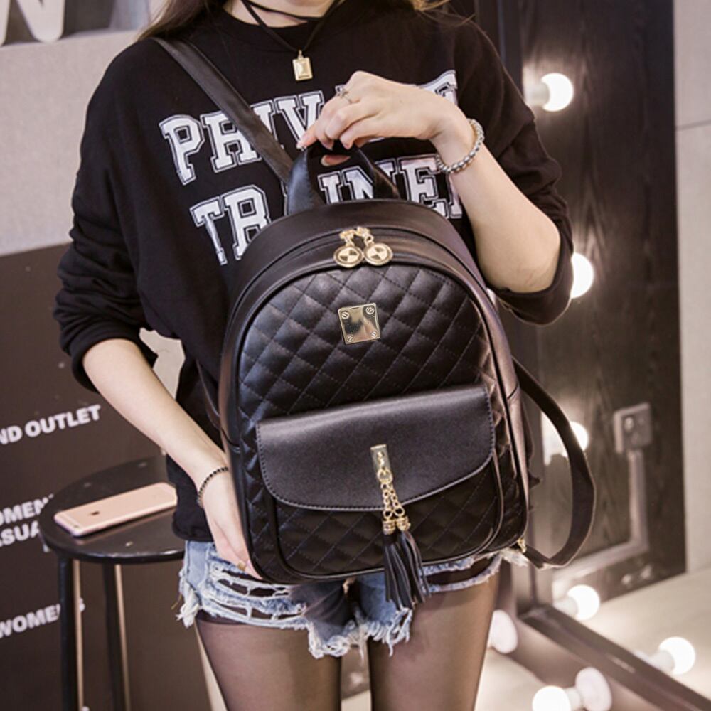 フロントのゴールドの金具がおしゃれなベーシックのレザーリュック