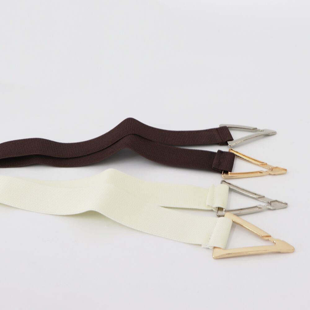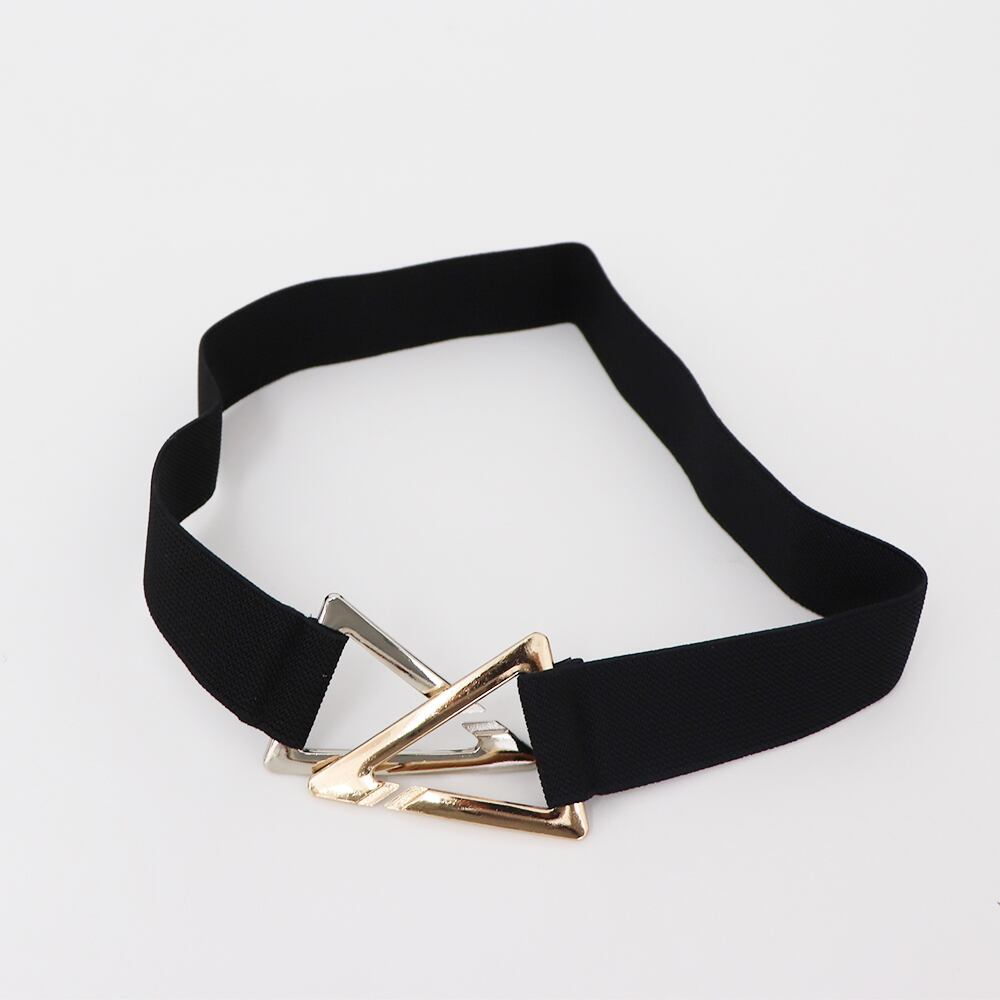 ゴールド色とシルバー色の配色バックルにゴム素材で仕上げた細めベルトです