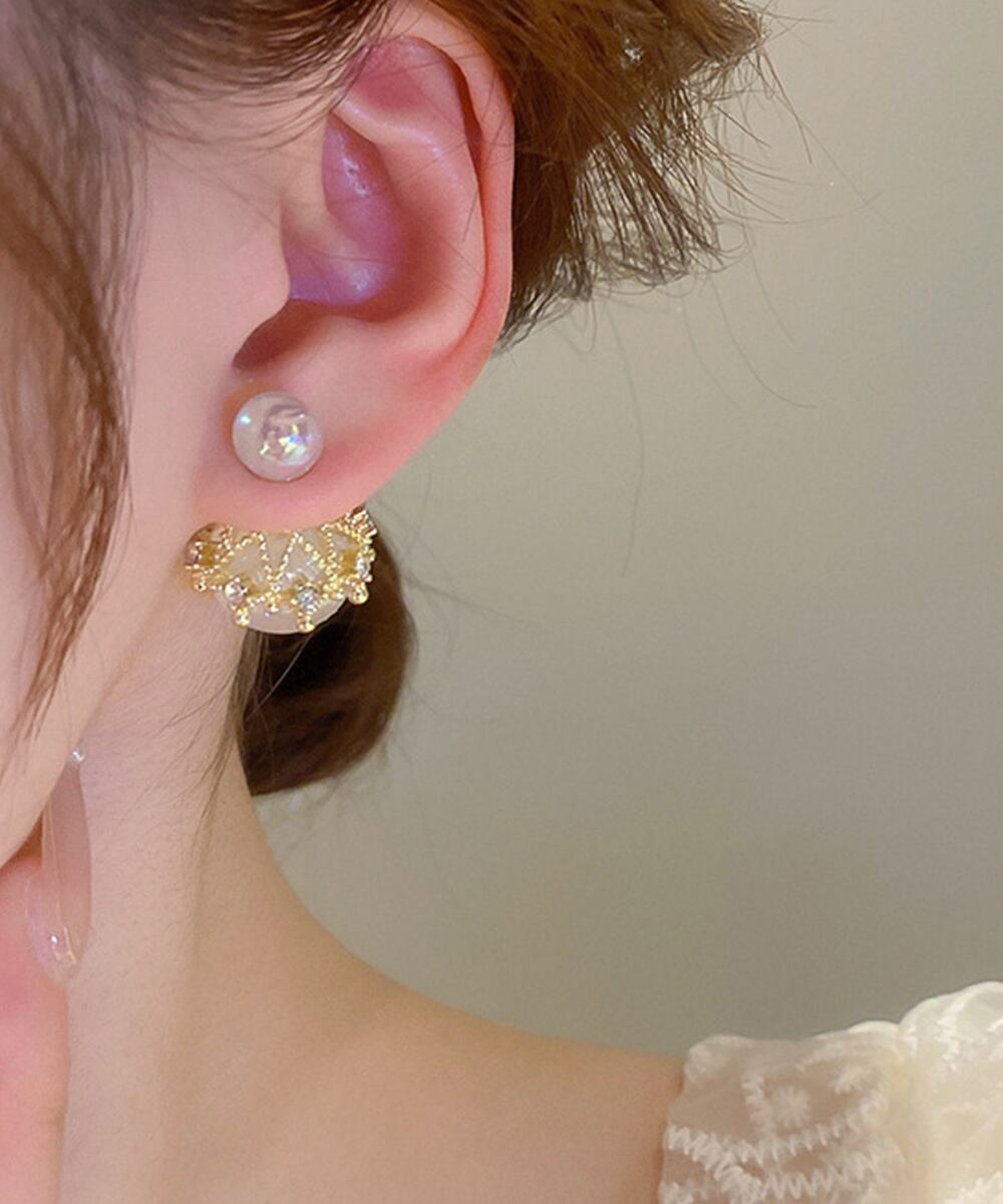 韓国風パールピアス 人魚の涙2WAYピアス 大ぶりスタッドピアス オルチャン 二粒パール 大人可愛 耳飾り 女性パーティ