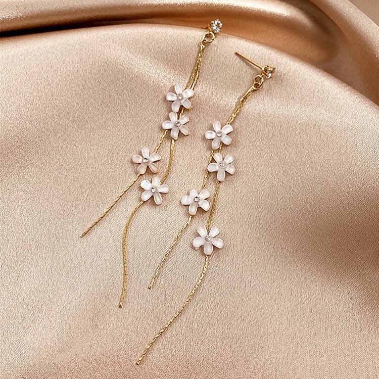 揺れるピアス 花 アクセサリー ジュエリー 人気 ストーン 結婚式 披露宴 ロングピアス フリンジ チェーン